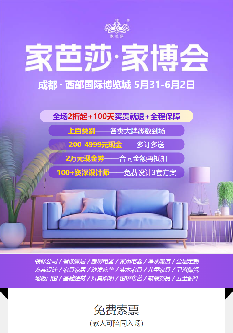 成都家博会门票:立即免费领取↓↓↓